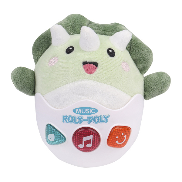Плюшевая музыкальная игрушка – это идеальное развлечение для младенцев. Выполненная в виде милого трехрогого динозавра с мягкой, приятной на ощупь зеленой опушкой и добрыми глазками, она привлекает внимание крохи. Белая полусфера у основания игрушки позволяет ей качаться и возвращаться в исходное положение, что способствует развитию координации движений и зрительно-моторной координации у малыша.