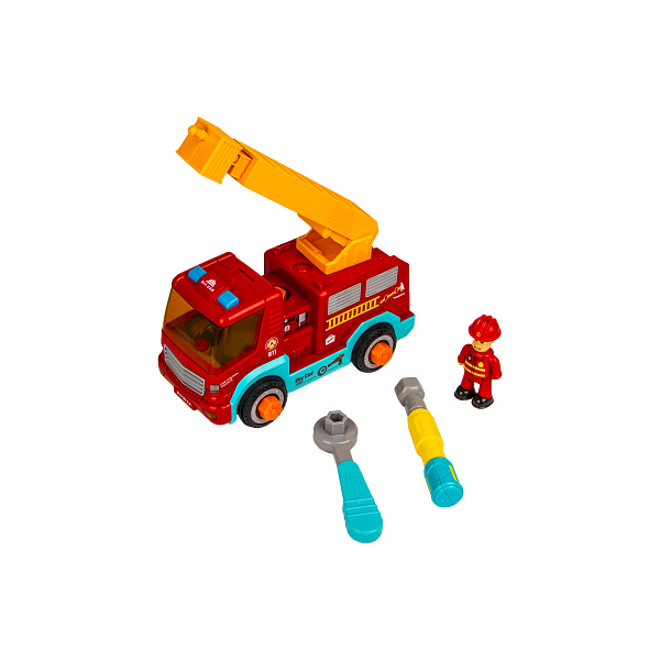 Узнаваемого ярко-красного цвета специальная техника с мигалками, выдвижной лестницей и храбрым человечком-пожарным в наборе станет поводом придумать новую увлекательную игру. Главное достоинство игрушки — машину можно чинить. С помощью шуруповерта и гаечного ключа ребенок может открутить кузов и колеса, провести нужный ремонт и техосмотр, а потом собрать заново.