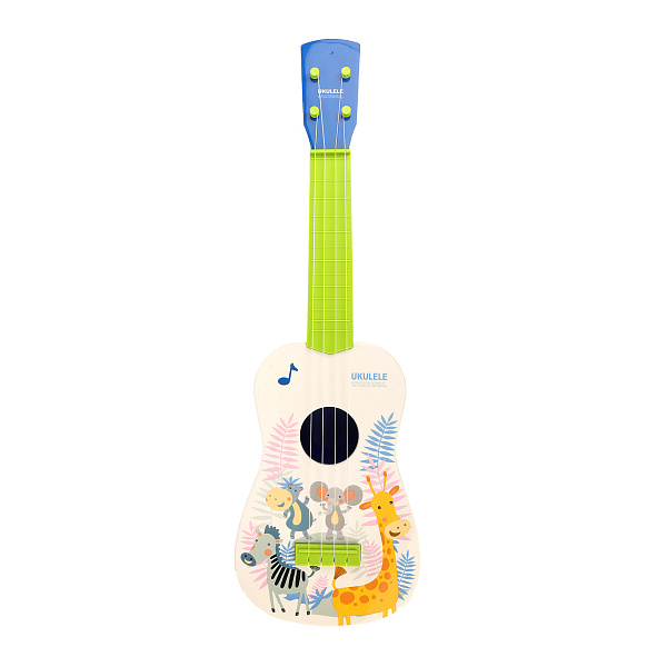 Музыкальная игрушка «Укулеле» — это увлекательный и развивающий инструмент для творческих малышей. Корпус игрушки украшен яркими изображениями милых животных.