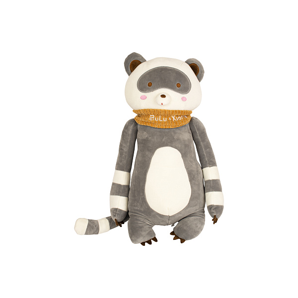 Забавный мягкий енотик является любимым персонажем малышей. Приятная ткань исполнена в сером цвете с включениями в виде белых полос на лапах, хвосте и животе. Мордочка выполнена в виде белой вставки с маленьким, коричневым носом. По бокам, на щеках розовый румянец.