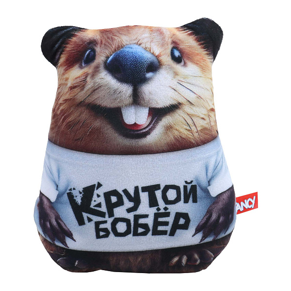 Мягкая игрушка Fancy «Крутой бобер» изготовлена из текстиля с фотопечатью. На передней части изображено лицо бобра с улыбкой и выступающими зубами. Бобр одет в светлую футболку с надписью «Крутой бобер». Наполнитель внутри делает игрушку мягкой на ощупь. Подходит для игры или как элемент декора. Длина изделия 50 см.