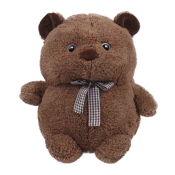 Игрушка мягкая FANCY BABY Мишка Пухляш-кудряш с бантиком в клетку коричневый 28см