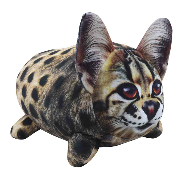 Мягкая игрушка Fancy «Сервал» выполнена из текстиля с фотопечатью. На поверхности изображен сервал с крупными ушами, пятнистой шерстью и яркими глазами. Фигура имеет простую объемную форму, лежащую на брюхе. Наполнитель внутри делает игрушку мягкой и объемной.