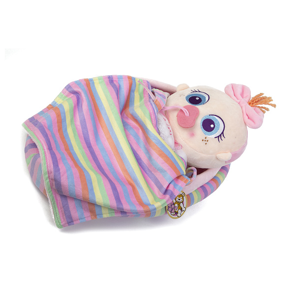 Игрушка мягкая пупс в переноске розовый интерактивная с 3лет