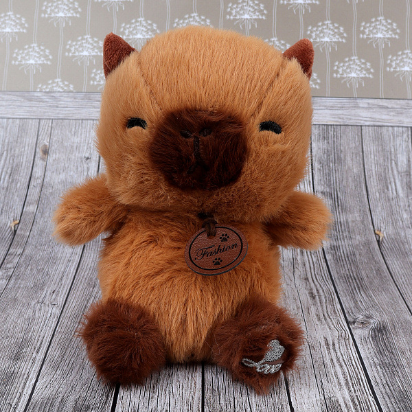 Мягкая игрушка капибара высотой 17 см — это очаровательный плюшевый зверёк светло-коричневого цвета с тёмно-коричневыми деталями на носике, ушках и лапках. У капибары милые, вытянутые глазами, создающие эффект улыбки, и нежная мягкая текстура, приятная наощупь. Компактный размер и продуманная форма делают игрушку отличным подарком и верным спутником для детей и взрослых. Игрушка украшена стильным кожаным ярлычком с надписью «Fashion» и вышивкой «Love» на одной из лапок, что добавляет индивидуальности и шарма.