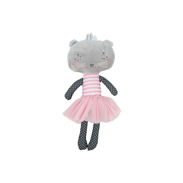 Мягконабивная игрушка понравится маленьким любителям животных. Забавная кошка Катя Мяукина входит в серию мягких игрушек «Лесные подружки». Она наряжена в полосатую майку и воздушную юбку розового цвета. Глаза, носик и рот вышиты. Игрушка выполнена из мягкого, приятного на ощупь материала с коротким ворсом. Малыши с удовольствием возьмут кошечку в кроватку, на прогулку, в детский сад.