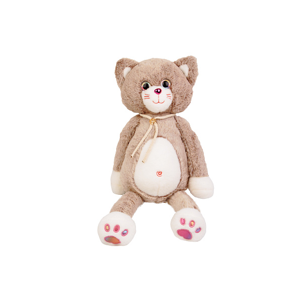Радужные круглые глаза и такой же переливающийся материал, имитирующий подушечки на лапах, добавляют красоты. Кот станет любимцем увлекательных детских игр, разовьет коммуникабельность и умение обращаться с животными. Разрешена чистка от пыли пылесосом и стирка в машине на деликатном режиме. Товар не имеет возрастные ограничения.