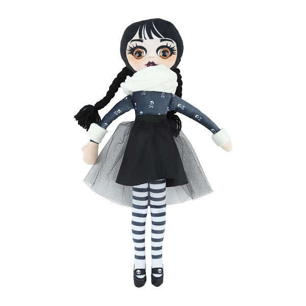 Мягкая игрушка «Кукла Аманда» станет не только компаньоном для игр, но и украсит интерьер детской комнаты. Кукла одета в готическое платье с пышной юбкой из тюля, образ дополняют черно-белые полосатые колготки, изящные туфельки и светлый шарф. Черные косички и большие выразительные глаза придают игрушке эмоциональности. Кукла подходит как для ролевых игр, так и для дружеских объятий перед сном.