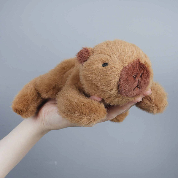 Мягкая игрушка капибара длиной 20 см — это милый плюшевый зверёк светло-коричневого цвета с тёмно-коричневыми деталями на носике и ушках. Игрушка выполнена из мягкого и приятного на ощупь текстиля, что делает её идеальной для объятий и игр. Компактный размер и удобная форма делают капибару отличным подарком и верным спутником для детей.