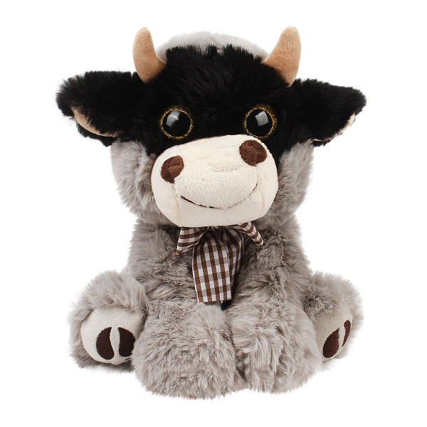 Мягкая игрушка «Коровка» высотой 23 см привлекает внимание своим необычным и ярким внешним видом. Голова коровки выполнена из густого чёрного меха, который красиво контрастирует с мягким серым телом, создавая оригинальный и стильный образ. Большие выразительные глазки с золотистым блеском излучают доброжелательность, а милый носик и улыбка создают ощущение тепла и уюта. Особенностью дизайна являются аккуратные рога светло-коричневого цвета и пушистые ушки, подчеркивающие её очарование.