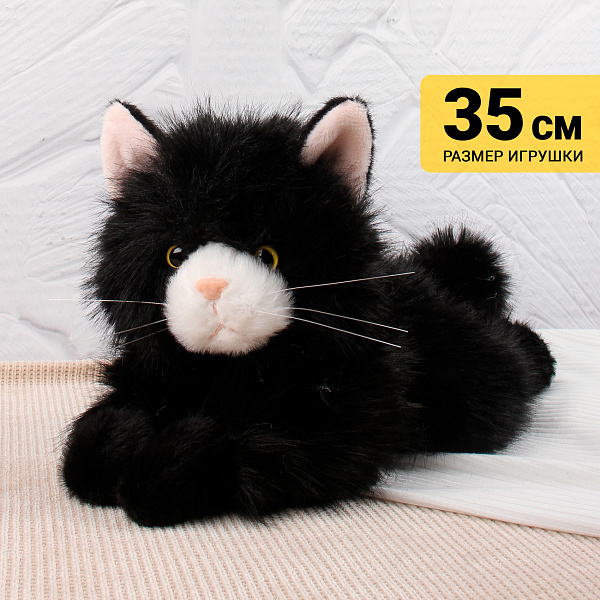 Мягкая игрушка «Черный кот» понравится любителям животных. Искусственный мех мягкий на ощупь, не вызывает раздражения на коже. Основной цвет — черный, на морде и ушах — белый мех. Пластиковые глаза желтого оттенка и розовый нос надежно прикреплены к голове. Хвост короткий, пышный. Сохраняет форму после стирку.