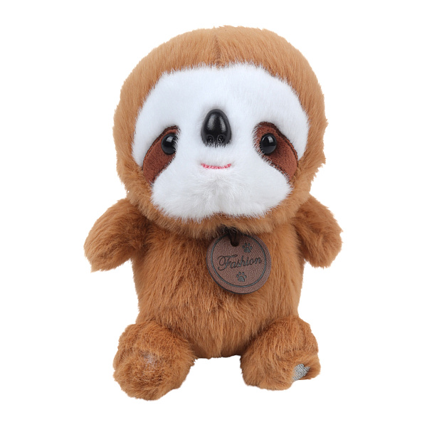 Мягкая детская игрушка высотой 17 см — это очаровательный плюшевый ленивец с пушистой светло-коричневой шерсткой и контрастными белыми и тёмно-коричневыми акцентами на мордочке. У игрушки большие выразительные чёрные глазки, милый носик, а также стильный кулон «Fashion» на шее, придающий игрушке особую изюминку.