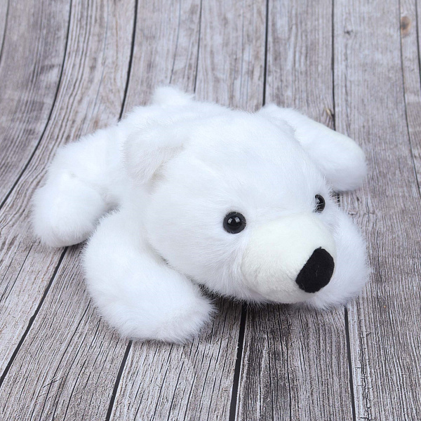 Форма игрушки изображает белого медвежонка с черным носом и глазами, придавая изделию милый и выразительный вид. Размер игрушки — 20 см. Мягкость изделия способствует развитию тактильных ощущений.