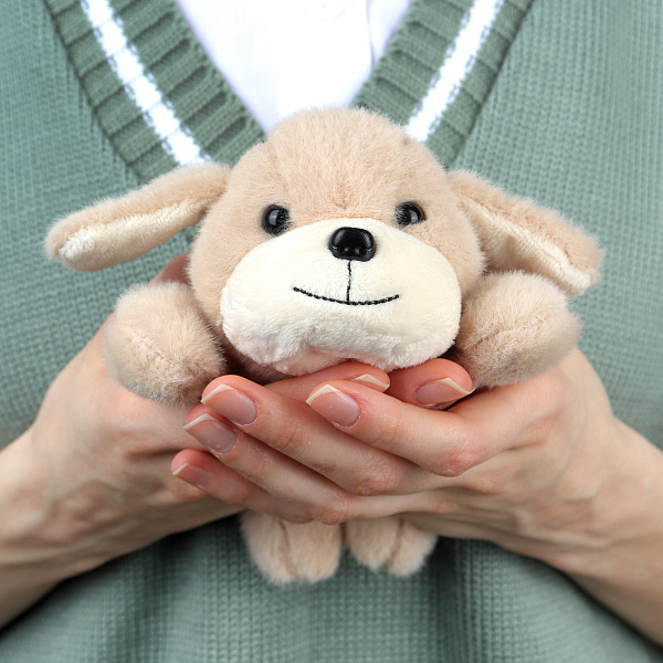 Мягкая игрушка щенок длиной 20 см — это очаровательный плюшевый песик нежно-бежевого цвета с белой мордочкой и большими мягкими ушками. У игрушки добрые блестящие глазки и мягкая, приятная на ощупь текстура, которая идеально подходит для игр. Компактный размер и удобная форма делают щенка отличным подарком и любимым спутником для детей.