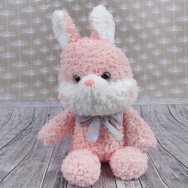 Мягкая игрушка «Зайка» выполнена в нежно-розовом цвете с белыми деталями на мордочке и ушках. Размер игрушки: 30 см. Вокруг шеи расположен крупный бантик в клетку пастельных цветов, который придает игрушке очаровательный вид.
