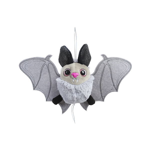 Если вам кажется, что летучая мышь — это не самое милое создание, посмотрите на эту игрушку. Мышь Мэлис безобидна и симпатична. У нее розовый носик, пушистое тельце, выразительные блестящие глазки-бусины и ушки, отделанные блестящей тканью. Конечно, летучая мышь не может обойтись без крыльев. Они выполнены из мягкого, приятного на ощупь материала. Серая Мэлис порадует ребенка мягкостью и приятным видом.