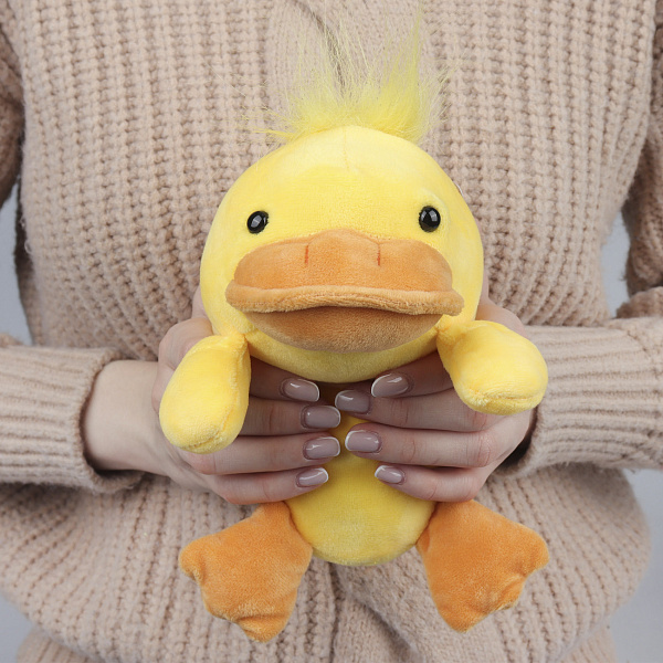 Мягкая игрушка «Утка Джерри» — это плюшевый утенок желтого цвета с оранжевым клювом, выполненный из мягкого, приятного на ощупь текстиля. Игрушка высотой 18 см имеет эргономичную форму, позволяющую ей устойчиво сидеть на поверхности или использоваться как поддержка для правильной осанки при сидении за столом или компьютером. Упакована в картонную коробку с окошком, где указано ее основное назначение — помогать держать спинку ровно.