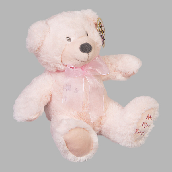 Игрушка мягкая мишка с бантом розовый 25см