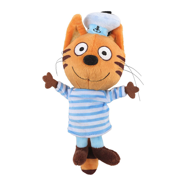 Мягкая игрушка «Коржик» из серии «Три кота» изготовлена из качественного текстиля и имеет высоту 14 см. Игрушка выполнена в ярких жизнерадостных цветах, характерных для персонажа, включая полосатую матроску и морскую шапку. Такие детали делают его узнаваемым и привлекательным для детей.
