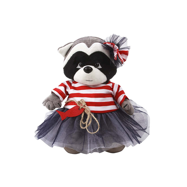 Мягкая игрушка в виде енота будет с радостью принята любым ребенком старше 3 лет. Особый интерес вызовет стильный наряд и полосатый бант возле ушка. Дети будут в восторге от реалистичного исполнения и забавного выражения мордочки животного.