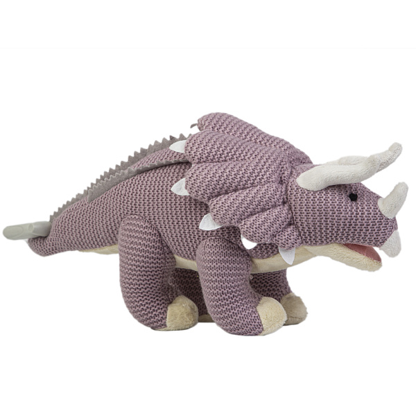 Для старшего детского возраста отличным вариантом подарка станет вязаный герой фильмов и игр о динозаврах – Трицератопс.