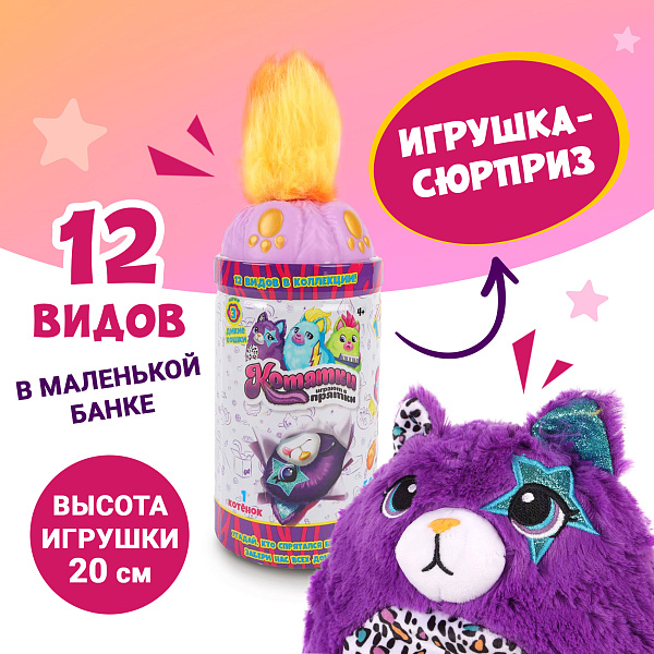 Игрушка выполнена из мягкого и приятного на ощупь текстиля, что делает ее комфортной и безопасной для игр и объятий. У котят яркие цвета и стильный дизайн, дополненный забавной «прической» в виде пушистого хвоста на крышке банки.