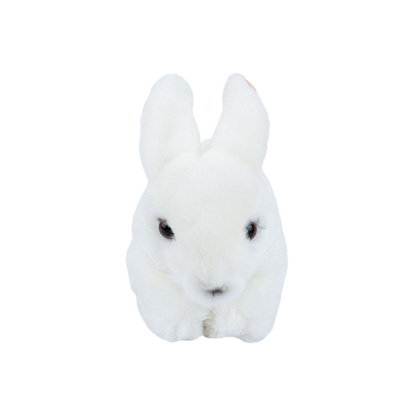 Маленький ушастый кролик станет подходящим подарком, как для мальчика, так и для девочки. Пугливый ушастик белого оттенка сшит из плотной ткани и имеет нежный, пушистый ворс. Погладив его ладонью, ребенок почувствует, словно под его рукой шерсть настоящего белого кролика. Маленькие, черные глазки смотрят настороженно, как и подобает этому представителю ушастых.