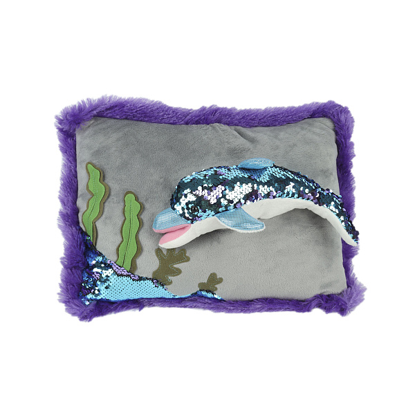 Познакомить ребенка с морскими обитателями легко, подарив ему мягкую игрушку. Игрушечная рыба хоть и в аквариуме, но не боится остаться без воды, поэтому станет верным спутником на прогулках и главным героем захватывающих игр. Мягкий текстиль приятен на ощупь и понравится ребенку своей текстурой. Края игрушки отделами пушистым фиолетовым мехом. На передней стороне вышит дельфин, украшенный сверкающими на солнце пайетками голубого и фиолетового цветов, при желании ребенок сможет сменить цвет мягкого друга. Угол игрушки похож на морское дно с водорослями. В качестве наполнителя использовано синтетическое волокно – материал хорошо держит форму и легко мнется. Высота игрушки 40см.