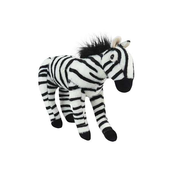 Пушистая полосатая зебра перенесет ребенка в африканские саванны и устроит с ним захватывающие игры. Тело игрушки пошито из мягкой и приятно на ощупь ворсистой ткани, украшенной тонкими черными полосами. Грива и кисточка на хвосте черные и меховые. Для наполнителя использовано синтетическое волокно – материал податливый, легко мнется и быстро возвращается в прежнюю форму. Игрушка устойчиво стоит на 4 копытах, и выдержит небольшого всадника на спине. Высота игрушки – 25см.