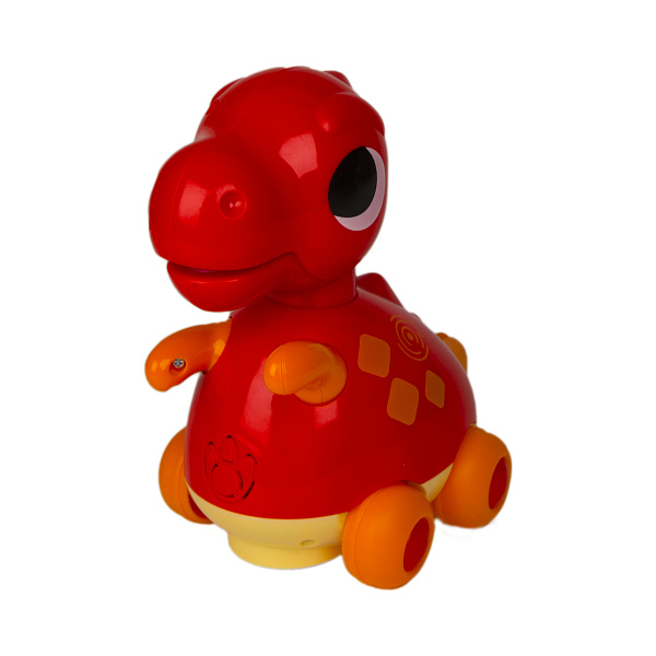 Милый игрушечный зверек-динозавр порадует и удивит своими способностями маленького ребенка. Игрушка приходит в движение от батареек, при нажатии на маленький рычаг она начинает передвигаться, когда встречается с препятствием (стеной, ножкой стула), то разворачивается и двигается в обратном направлении. Ребенок старше года может использовать динозавра как каталку.