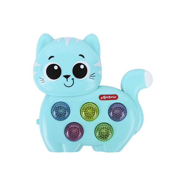 Маленькая детская рука без труда научится обращаться с кнопками на изделии. Благодаря своему новому другу, сделанному в успокаивающих голубых тонах, ребенок познакомится с 25 милыми детскими песенками, мелодиями, а также с разными звуками и голосами животных. Добрые игры с веселым котенком положительно скажутся на музыкальных способностях, слуховом, зрительном и тактильном восприятии. А мерцание огней отвлечет карапуза от слез и капризов.