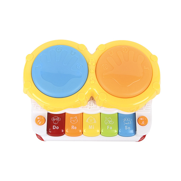 Детское пианино с ручными барабанами – отличная развивающая игрушка для самых маленьких музыкантов. Клавиши проигрывают ноты или голоса животных в зависимости от выбранного режима. Включив воспроизведение одной из песен, малыш сможет сам попробовать отбить ритм. Размер идеально подходит для небольшой детской ладони.