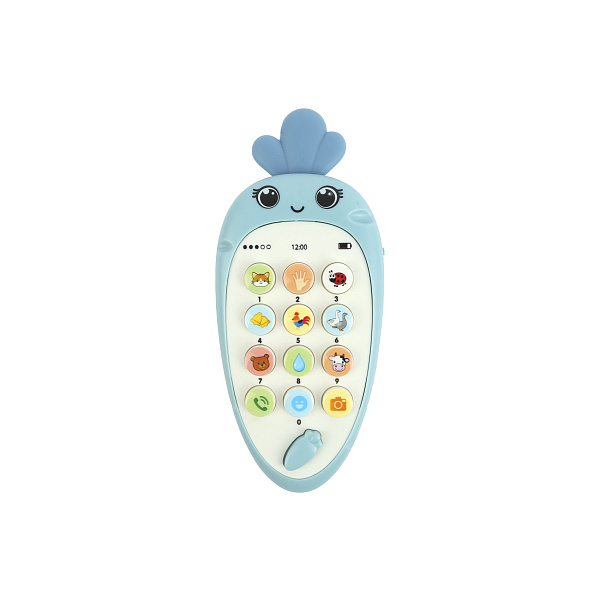 Оригинальный телефон с корпусом, визуально напоминающим морковку, развлечет ребенка старше 18 месяцев, надолго займет его внимание. Нажимая яркие кнопки, дети смогут прослушать 9 веселых песенок, забавные фразы и смешные звуки.