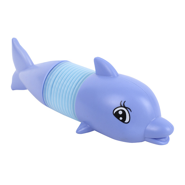 Основная часть игрушки выполнена в виде «гармошки» из гибкого материала, что позволяет её сжимать и растягивать, развивая тактильные навыки. Удобные плавники позволяют маленьким ручкам легко схватить и удерживать игрушку. Забавная мордочка дельфина вызывает положительные эмоции, развивая воображение и креативные способности малыша.