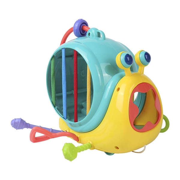 Улитка оснащена отверстиями различных форм, в которые дети могут вставлять соответствующие элементы. Это помогает развивать логическое мышление и координацию движений.