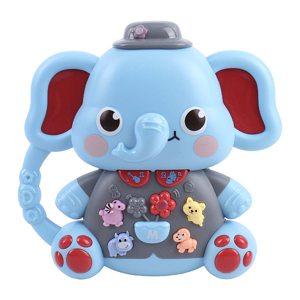 Игрушка оснащена различными кнопками на туловище слонёнка, каждое нажатие которых сопровождается музыкой. Это способствует развитию слухового восприятия и моторики у детей, а также побуждает их взаимодействовать с игрушкой.