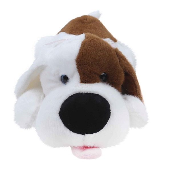 Игрушка Собака Любимчик мягкая с коричневыми пятнами белая 35см