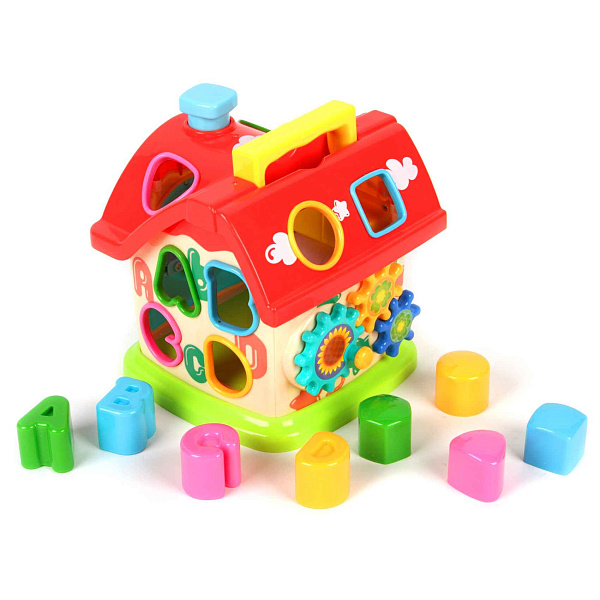 Яркий домик-сортер развивает логическое мышление и умственные способности малыша. С помощью домика маленький открыватель сможет выучить свои первые числа и буквы, запомнить названия фигурок и фруктов. А под интересные мелодии и звуки делать это будет весело и приятно!