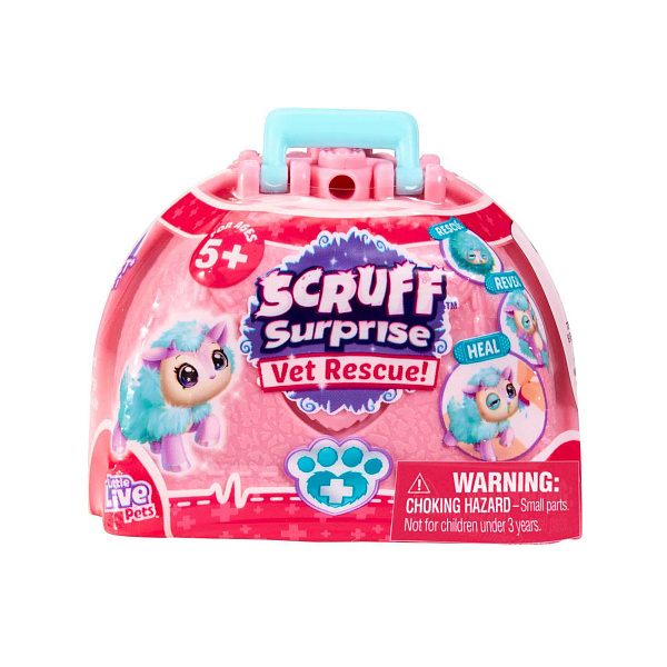 Внутри яркой сумочки находится забавный зверек, которому требуется ветеринарная помощь. В коллекцию Scruff Surprise входят 24 игрушки, среди которых могут попасться домашние животные, редкие создания, жители Арктики, морские обитатели или экзотические животные. Каждый зверек выполнен из пластика с добавлением плюшевых деталей. Сумочка доктора трансформируется в кровать для пушистика. Поместите туда зверька и принимайтесь за лечение: вытирайте слезки, лечите насморк, избавляйтесь от блох, согревайте пушистика и дайте ему поспать, чтобы набраться сил.