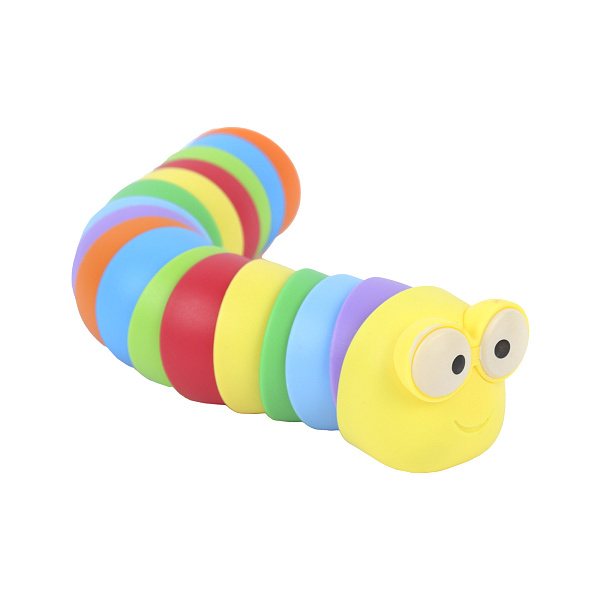 Разноцветная игрушечная гусеница не только радует своим ярким внешним видом, но и стимулирует развитие тактильных ощущений и моторики ребенка.