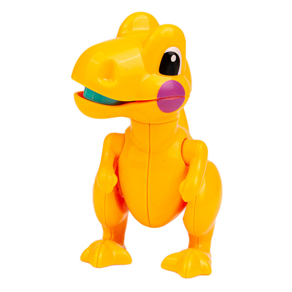 Мелкие детали яркой игрушки-тиранозавра спрятаны внутри, и это делает трещотку безопасной для малыша. Игрушка издает громкий, но приятный звук, который успокоит и развлечет ребенка, если он капризничает. Маленького игрушечного динозаврика удобно брать с собой на прогулку, а также на семейные поездки.