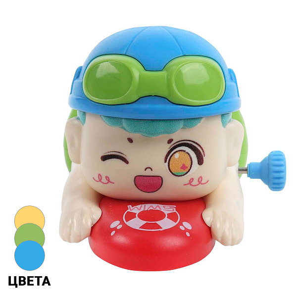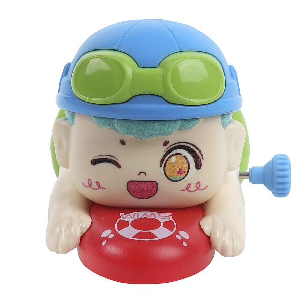 Игрушка заводная «Мальчик-серфер» - это забавная и подвижная фигурка, выполненная в стиле милого мультяшного персонажа. Мальчик лежит на доске для серфинга, одет в яркий купальный костюм и шлем с очками - все это создает образ веселого любителя приключений.