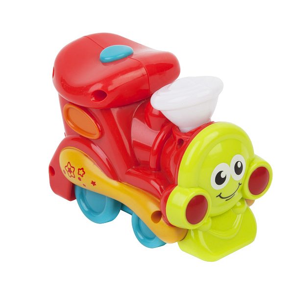 Это симпатичный паровоз из яркого пластика, напоминающий неутомимых героев книжек с картинками и сказочных мультфильмов, снабжен подсветкой и музыкальным сигналом, придающим ему особую привлекательность и индивидуальность.