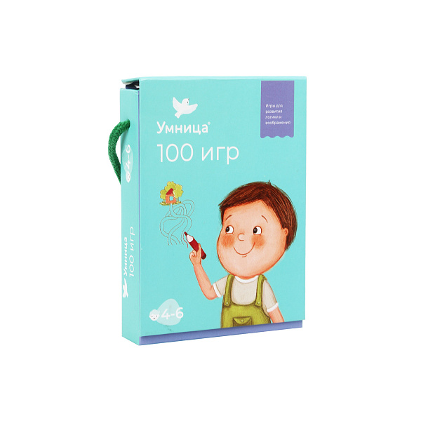 Чтобы лето ребенок провел не только активно, но и продуктивно, подарите ему сборник увлекательных игр «Умница». В небольшой коробке голубого цвета ребенок найдет 100 занимательных игр, которые направлены на развитие логики, моторики и воображения. А благодаря компактному размеру игру можно взять в собой в поездку или на прогулку с друзьями – так игры станут еще веселее! Внутри ребенок найдет плотные ламинированные карточки с заданиями, а также подарочный маркер. Рекомендовано для детей с 4-6 лет.