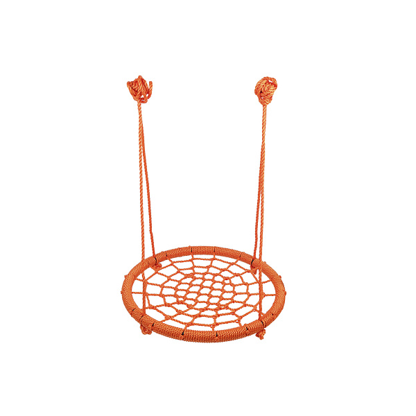 К перекладине качели крепятся двойным канатом высотой 60 см. Перемычка укреплена на двух вертикальных стойках. В такой качели под присмотром взрослых можно качать детей даже самого младшего возраста. Цвет сиденья и крепежных канатов – оранжевый.