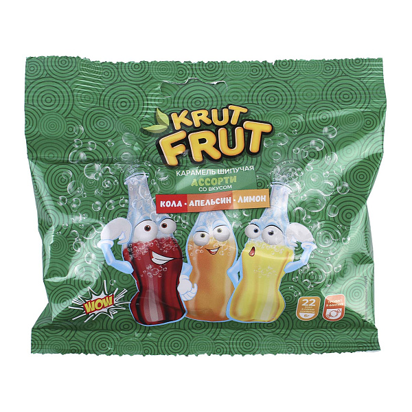 Карамель «Krut Frut» с шипучей начинкой — это оригинальное лакомство, которое порадует яркими вкусами и неожиданными ощущениями. Внутри каждой конфеты скрыта шипучая начинка, создающая удивительный эффект.