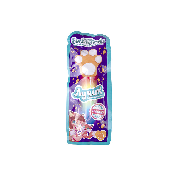 Карамель в форме лапки животного на светящейся палочке понравится маленьким поклонницам Enchantimals. Карамель представлена в трех оригинальных фруктово-ягодных вкусах: апельсин, клубника и голубика. После употребления карамели светящуюся палочку можно использовать как волшебный аксессуар для детских игр.
