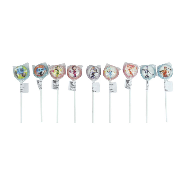 Леденец на палочке со вкусом клубники – любимая сладость многих детей. Карамель украшена яркими изображениями персонажей мультфильмов, напечатанными на съедобной сахарной бумаге. Благодаря палочке руки ребенка останутся чистыми.