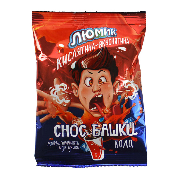Состав: сахар, сироп глюкозы, регулятор кислотности (лимонная кислота, яблочная кислота), ароматизатор (кола), пищевой краситель (сахарный колер).