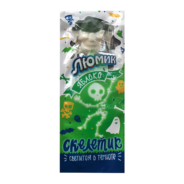 Карамель Люмик «Скелетик» порадует детей ярким фруктовым вкусом и необычным дизайном. Она станет отличным дополнением к детскому празднику или просто сладким сюрпризом. Держатель конфеты выполнен в виде скелетика, который светится в темноте, создавая особое настроение и привлекая внимание.